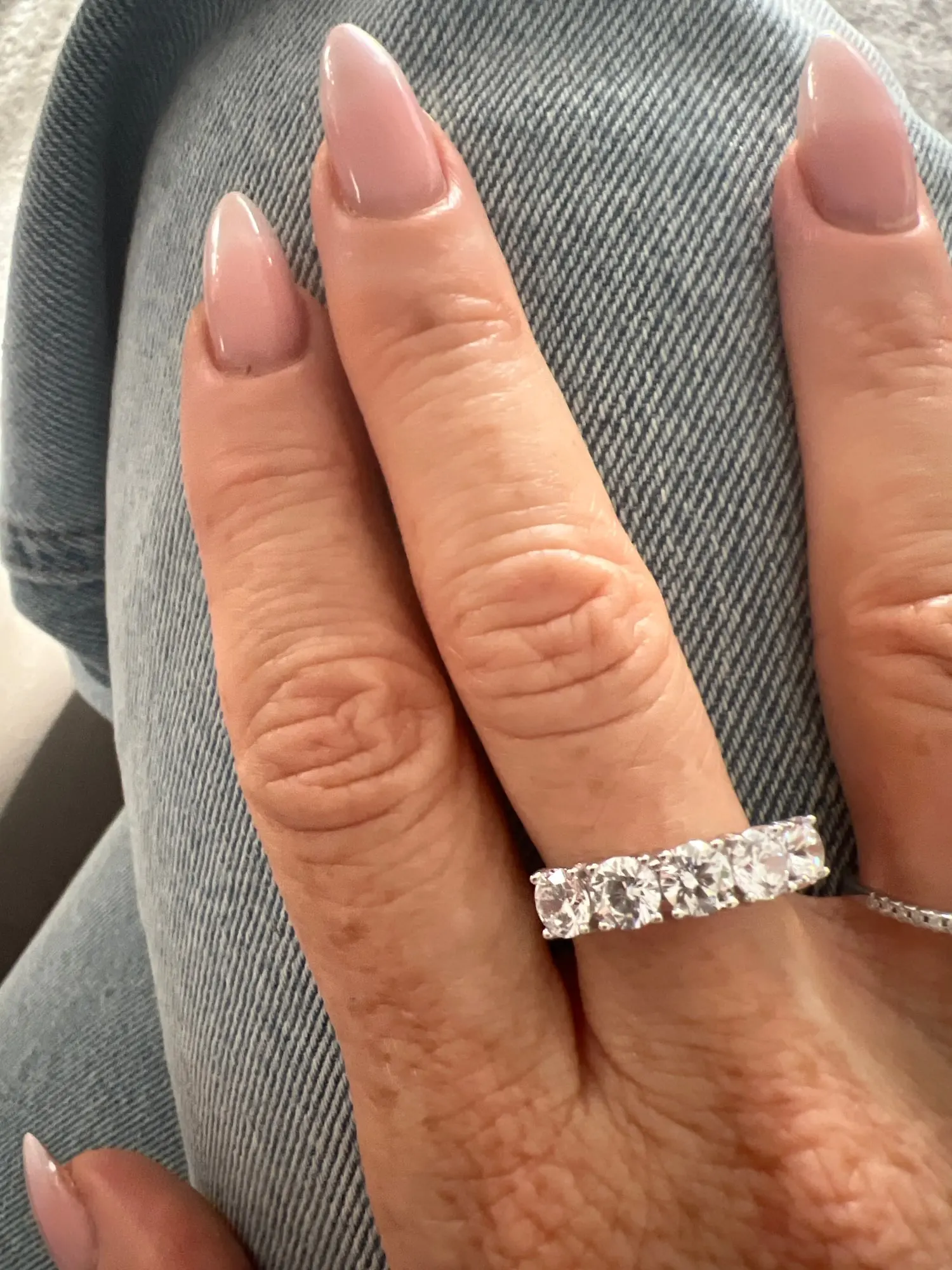 All stones we choose are 100% D color and VVS1 grade Moissanite, which has the same optical and physical properties as a South African diamond. However, this stone will never lose its brilliance and is brighter than a diamond.